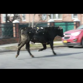 It look a legion of pigs to finally detain the runaway bull, who shocked pedestrians as he scampered up and down the streets of Jamaica and Ozone Park in Queens.