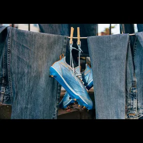 Inspired by the “dad jeans” fashion statement, the special edition Father’s Day cleat is dipped in soft, baby blue and highlighted with denim striping details. Brown jean stitching accents the light blue SprintSkin upper, while Nubuck details on the tongue and pulltab complete the look.
