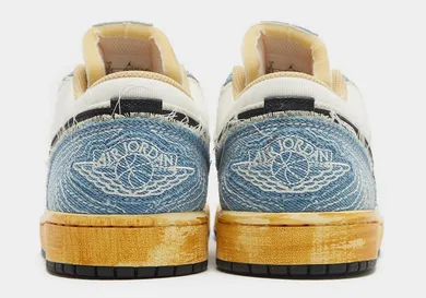 When you look at this shoe, it is clear that there is a lot going on. However, this is being said in a good way. Firstly, the base of the shoe is white, which is quite common. Secondly, the overlays here are made with some distressed denim, and it looks amazing. Furthermore, we have a black Nike swoosh here. This is then followed up by an aged midsole that seems to have brown rust all over it.