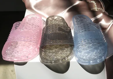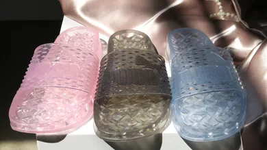 According to NiceKicks, there's a collection of Rihanna x PUMA Fenty Jelly Slides in production that will be dropping sometime this Summer. The translucent slides were unveiled yesterday at an exclusive event, showcasing a range of colors including pink, icy blue, and black.