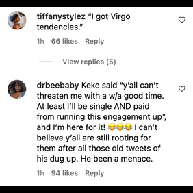 Keep scrolling to read fans' thoughts on Keke Palmer's latest clap back at Darius Jackson. Who's side are you on, moms or dads? Let us know in the comments, and check back later for more music/pop culture news updates.