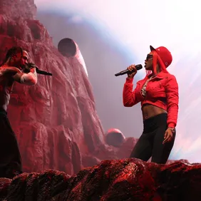 However, Scott didn't perform his July 8 set entirely alone. At one point in the proceedings, he brought out Sexyy Red, who performed alongside him in a red cropped hoodie and black leggings. Red is currently enjoying a meteoric rise to stardom. She earned major industry attention for her track "Pound Town", which was later remixed by Nicki Minaj. That remix, dubbed "Pound Town 2", peaked at #66 on the Billboard Hot 100. She followed that with her second mixtape, Hottest Hood Princess.