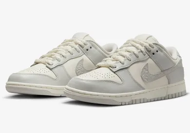 The sneakers feature a gray rubber sole with a clean sail midsole. The sneakers have a sail-colored leather base with gray leather overlays. The sneaker features a few interesting details that aren't found on a traditional pair of Nike Dunk Lows. The laces are a thick rope instead of the usual laces found on most sneakers. The Nike Swoosh embodies the "needlework" aspect and features textured leather. Nike branding can be found on the tongue and on the heel, in cursive. Overall, sneakerheads can rejoice that this pair is coming back and they have a second chance to purchase.