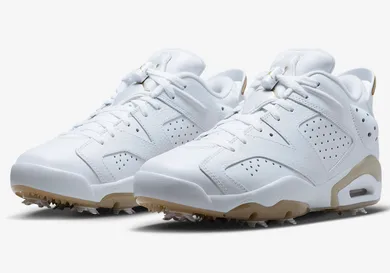 With the Air Jordan 6 Low Golf proving to be quite popular, Jumpman has been looking to cook up some new colorways. Overall, this is great news for all of the golfers out there. With so many unique tastes out there, Jordan Brand wants to cater to a wide variety of people. With the White/Khaki colorway below, that is exactly what is happening. Although, one could argue that this is the most mass-appealing version of the shoe yet.