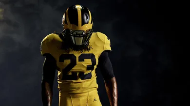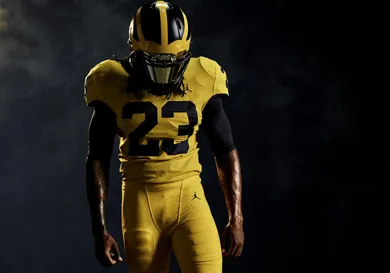 For the first time, the Wolverines will wear a new all-maize uniform in celebration of the University of Michigan Bicentennial and in honor of the 150-year anniversary of the school's official colors, maize and blue. In addition to the all-new maize Wolverine uniforms, Jordan Brand is debuting a University of Michigan edition of the Jordan Trainer 2, which will be available at select Nike retailers on Wednesday, August 30th.