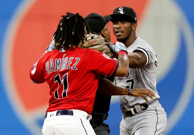 The fight began after Ramírez slid into second base after hitting an RBI double to put the Guardians on the board and cut the deficit to 5-1. To reach the base, Ramírez slid hands-first through Anderson's legs. After being called safe, Ramírez tapped Anderson's leg and extended his hand as if asking Anderson for help getting up. Anderson refused and as soon as Ramírez got up, the two men started arguing. Dodging around second-base umpire Malachi Moore, the two men began swinging closed-fist punches at each other. While Ramírez and Anderson were dragged away by teammates, managers Terry Francona (Cleveland) and Pedro Gifrol (Chicago) continued to argue in the middle of the field. They were both eventually tossed, as were Cleveland's third base coach Mike Sarbaugh and relief pitcher Emmanuel Chase.
