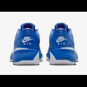 The sneakers feature a white rubber sole and a royal blue midsole. The upper is constructed from an all-university red mesh with more game royal leather overlays. White details, matching the sole, are featured on the Nike Swoosh, laces, and on the heel. The tongue features white Giannis branding and the heel features white Nike Air branding. Overall, these sneakers cater to performance and adeptly accommodate Giannis' aggressive basketball style. They also sport a clean and cohesive iconic game royal colorway.