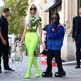 Kim coordinated her high-end, all-black look with a black crocodile Hermès Kelly bag. The luxury bag is a favorite among the rich and famous. Typically, a Hermès bag retails over $40,000, Page Six reports. However, North seems to opt for a more colorful choice. The 10-year-old was sporting a vintage Louis Vuitton travel bag with a cherry print.