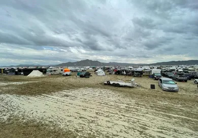 This chaos has resulted in the Bureau of Land Management, which oversees the Black Rock Desert, essentially locking down the festival. Attendees have been instructed to shelter in place until the roads can be reopened. Meanwhile, the vehicle gates have been shuttered and the the festival-ending effigy burn canceled. However, several high-profile guests have hiked the five miles to the closest town, Gerlach. Earlier in the week, climate activists held up entrance to the festival for hours after blocking the main road into the festival site. They were eventually removed by the county sheriff and tribal rangers. The images later went viral after it was shown that several law enforcement officers drew weapons on the protestors.