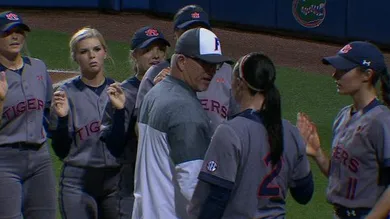 In the handshake line, following Auburn's 1-0 victory, Auburn shortstop Haley Fagan put her hand down when she got to the Florida coaches which resulted in UF head coach Tim Walton hitting her in the shoulder. Fagan retaliated by shoving Walton in the back and then it turned into a shouting match.