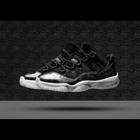 Official images of the "Barons" Air Jordan 11 Low have recently surfaced on the 'net, featuring a black nubuck upper, iridescent patent leather overlays and a milky white outsole.