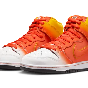 The Nike SB Dunk High is causing a buzz with its upcoming "Sweet Tooth" colorway, reminiscent of candy corn. This eye-catching design is set to satisfy sneaker enthusiasts and sweet tooths alike. With a vibrant mix of orange, yellow, and white, these kicks mirror the iconic candy's colors. The playful detailing doesn't stop there; the shoe's texture mimics the sugary treat's stripes, adding a delightful twist to your sneaker game.