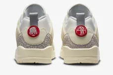 The sneakers feature a sail rubber sole and a clean sail midsole. The midsole contains an air bubble under the heels. Coconut milk leather constructs the uppers, with a light and dark grey elephant print lining the toebox and heels. Also, sail mesh can be found on the sides, and coconut milk laces complete the design. Red accents include the lace locks, tongue, and heels. The tongue features the Jordan logo in two places. Also, although official images are unavailable, we can assume the Jumpman will also adorn the heels.