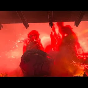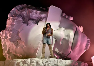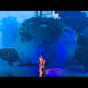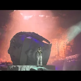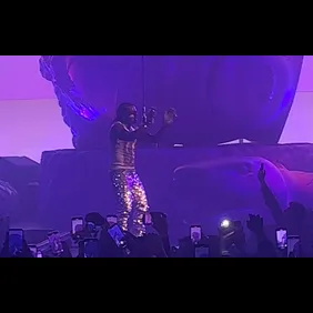 As the clock neared showtime, around 10 p.m., the venue plunged into darkness, igniting a wave of cheering and roars among the crowd. The stage was set with a white curtain, which ultimately was lifted to reveal a giant statue head of Gunna. The sculpted material also included a massive snake that adorned the stage. The intro to "Back At It" began playing and this was a moment in itself. Although it was the first song, the crowd was eager to get things started. The curtains lifted to reveal an elevated Gunna standing several feet above the ground, on top of his statue head. As the curtains lifted, an elevated Gunna was unveiled, positioned several feet above the ground, and standing on top of the towering sculpture of his own head. It was a grand entrance to remember.