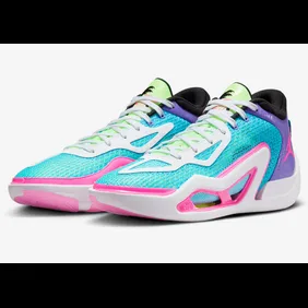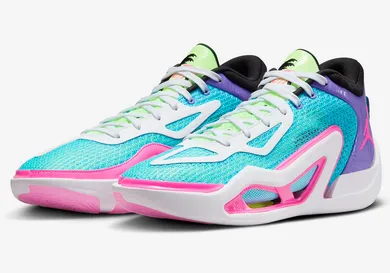 The Jordan Tatum 1, Jayson Tatum's signature sneaker, is gearing up for a head-turning release with its upcoming "Wave Runner" colorway, set to redefine sneaker fashion. This striking iteration bursts with vibrant pink, blue, green, and purple, delivering an explosion of color. The "Wave Runner" edition showcases a mix of bold hues, creating a dynamic and eye-catching design. These colors flow across the upper, creating a vivid landscape for the eyes to feast upon. This shoe offers not only bold aesthetics but also top-notch performance.