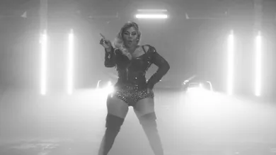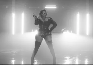 The black-and-white video treatment sees Kim decked out in an all black leather get-up stuntin' hard in the camera with a heavy crew backing her up. “Ain’t nothing more important than this money,” she raps while piles of money, strippers and snakes pop in and out of the shot.