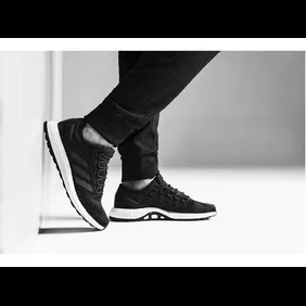 A new edition of the popular running silhouette PureBOOST is included in the drop. The shoe sports a Primeknit upper designed with a custom pattern that fades from toe to heel mimicking volcanic glass. The heel cap is made of soft synthetic suede pressed with the Reigning Champ logo and the sockliner and insole have a soft leather feel.