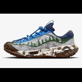 The Nike ACG Mountain Fly 2 Low, a shoe designed by Garrett Amerson, embodies the essence of the Pacific Northwest. Weighing a mere one pound and seven ounces, this sneaker reflects Garrett's love for science, chess, and historic hats. The design showcases trees, mountains, and a waterfall on the tongue, capturing the region's natural beauty. Its midsole mimics hiking mud, textured to resemble dried mud, while a purple butterfly honors Garrett's late twin brother, symbolized on the right sock liner.