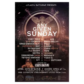 This Sunday there’s an event going down in Atlanta featuring, among others, Georgia MCs Ness Lee and Syd Vicious. The headline battles are Chef Trez vs Ness Lee and Syd Vicious vs Brixx Belvy.