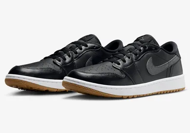 The Air Jordan 1 Low Golf seamlessly combines sporty performance with iconic style. Its upcoming "Black Gum" colorway introduces a sleek update to this classic silhouette. Retaining the essence of the original Air Jordan 1, this golf version features a low-top design for enhanced mobility on the course. The "Black Gum" color scheme brings a sophisticated and versatile look, blending effortlessly with various golfing outfits while maintaining the shoe's timeless appeal.