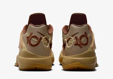 A court-ready performance is delivered by the sneakers, equipped with a gum rubber sole and a sail Phylon midsole. Also, the upper, in Khaki and Sesame, gains strength from TPU reinforcement on ripstop material, ensuring durability. Notably, red Nike Swoosh graces the straps, while brown details extend to the laces and sock liner. Finally, completing the design, the heels feature intertwined Kevin Durant and Nike logos, subtly incorporating a dragon.