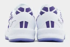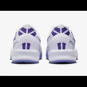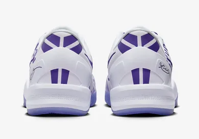 First, with a sleek design, the sneakers feature a translucent purple rubber sole, with a clean white midsole. Also, the upper, constructed with white mesh, subtly incorporates a pattern featuring the numbers 8 and 24, a nod to Kobe's iconic jerseys. Further, court purple accents grace the Nike Swoosh and the Kobe Bryant signature near the heel. Finally, additional touches include a white sock liner and the Kobe Bryant logo adorning the tongue.