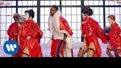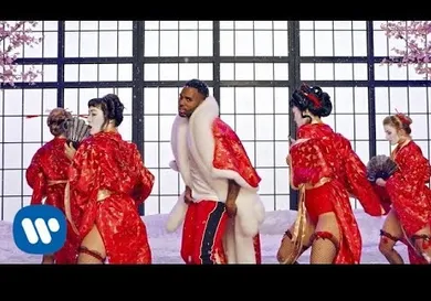 The video is a series of vibrant scenes in which Derulo finds himself in the wilderness with women who play the role of exotic animals while French lets off his bars in front of a backdrop of golden skulls.