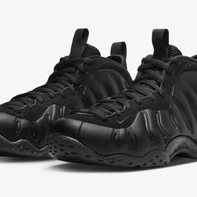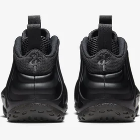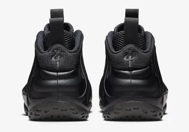 These shoes have a black rubber sole and a matching black midsole, blending seamlessly. The upper is made of a black shell-like material with nubuck overlays, all in black. A small Nike Swoosh in black sits on the toebox, while black Nike Foamposite branding adorns the heel. Overall, these sneakers boast a clean and straightforward design. Their all-black appearance makes them effortlessly stylish and versatile year-round.