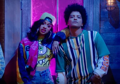 “Dedicated to one of his favorite TV shows of all-time,” Bruno delivers an “In Living Color”-inspired video, that finds both Cardi & Bruno rocking colorful 90’s gear and recreating scenes from the ’90s sketch comedy series starring Keenen and Damon Wayans. The throwback visual starts off with Cardi and Bruno painting on the screen while reimagining the intro to “In Living Color,” before Bruno & Cardi take it back to the actual set of the show for some choreographed dancing.