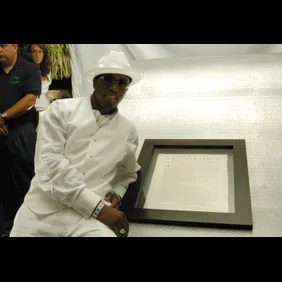 The most politically active period of Diddy's career came in 2004, when he launched his "Vote or Die" campaign into action. That summer, at his annual white party soirée in the Hamptons (among the guests: Al Sharpton, Aretha Franklin, and Paris Hilton), he underscored his political message by arriving with an original copy of the Declaration of Independence he'd borrowed from television producer Norman Lear.