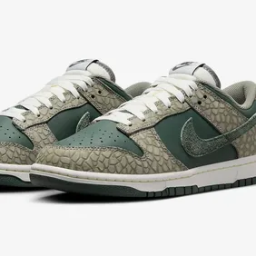 The sneakers feature a green rubber sole and a clean sail midsole. The uppers of the sneakers are constructed from both a sail and green leather base, with blue leather overlays. Further, a sail leather Nike Swoosh is featured on the sides. Finally, Nike branding can be found on both the tongues and the heels of the sneakers.