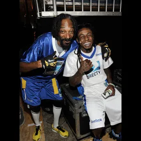Wayne played in the flag football game today, facing off against fellow rapper Snoop Dogg. While Wayne's knowledge of football is strong, his skills seem to be no match for Snoop's, who defeated the Birdman Jr. and his teammates 43-42. Weezy was not happy with the loss, as he is seen photographed getting into an altercation with someone after the game.