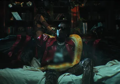 In a dark and ancient-looking mansion, the two rappers are accompanied only by slithering snakes, body-painted women, and other creepy paraphernalia -- masked and hooded figures, eerie outdoor shots, all around, it's got spooky vibes, but with the touch of luxury you'd expect from the two high-living rappers.