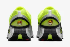 The sneakers feature a black rubber sole and a black and white midsole. The midsole features multiple Nike Air bubbles, maximizing comfort and style. Also, a black material constructs the uppers, and it features a volt-to-solar red gradient. Black waves create a radiant effect throughout the uppers, and a vibrant volt Nike Swoosh is placed on the sides. Nike branding is featured on the tongue and the Nike Tuned Air logo is on the heel.