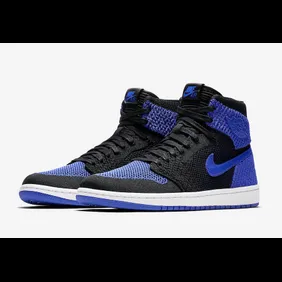 "The court had never seen anything like the Air Jordan I when it debuted in 1985. Constructed from the best materials of the era, its design carried it from cutting edge to classic as the Air Jordan line gained altitude. Now, with over thirty years of colors and materials behind it, the original anti-gravity machines take another step forward with a complete Flyknit reconstruction. The flexible, lightweight update includes pigskin-leather accents and stays true to its DNA with Nike Air cushioning, a high-cut collar and OG royal and black blocking."