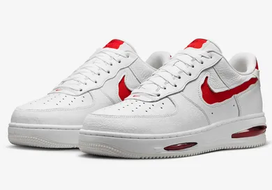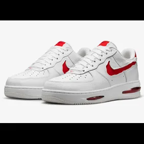 The "White/University Red" colorway adds a bold and energetic touch to the classic Air Force 1 silhouette, making it a standout choice for sneaker enthusiasts and fashion-forward individuals alike. Pair it with your favorite jeans and a graphic tee for a casual yet stylish look, or dress it up with tailored pants and a button-down shirt for a more refined ensemble. With its timeless design and contemporary flair, the Nike Air Force 1 Low Evo in "White/University Red" is a must-have addition to any sneaker collection.