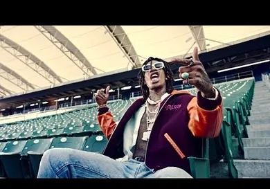 In his brand new "Letterman" video, Taylor Gang's stoner-in-chief Wiz Khalifa has opted for a nostalgic approach. Appropriately donned in a letterman jacket, Wiz posts up in a football stadium, spitting bars while running game on one of the cheerleaders. It's a highly cinematic clip, somewhat reminiscent of Desiigner's soccer-celebrating "Outlet" visuals, as Wiz stands alone in an empty field. As usual, he's coming through with some greenery, and he and his entourage waste little time in sparking up.