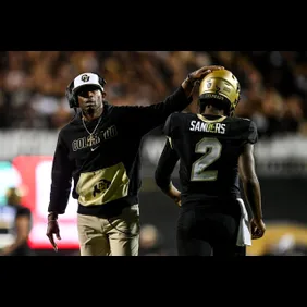 Deion Sanders Celebrates With Shedeur Sanders