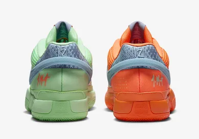 This sneaker adopts a mismatched aesthetic, with one side in vapor green and the other in mandarin orange. Each shoe sports a light blue Nike Swoosh, adding a vibrant pop of color. Additionally, both sneakers showcase the Ja Morant logo on the tongues, albeit in different hues. This unique design creates an eye-catching contrast, perfect for those who love to stand out from the crowd.