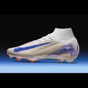 Get ready to dominate the pitch with the Nike Mercurial Superfly 9 Elite, slated for release in the eye-catching "Blueprint" colorway as part of the Blueprint pack. This performance soccer cleat boasts a sleek white color scheme accented with vibrant blue and orange details. The cleats will make a statement on the field. Designed for speed and agility, the Nike Mercurial Superfly 9 Elite is engineered to help players reach their full potential on the pitch. With its lightweight construction and responsive cushioning, this soccer cleat provides the support and comfort needed to outmaneuver opponents and score goals with ease.