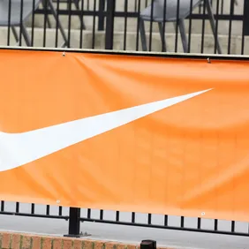 The cleats feature orange cleats on the bottom, with an iridescent midsole. Also, the uppers of the cleats are comprised of a white mesh base, with blue details including the Swoosh. Further, the sock liner, which keeps your feet locked in, is white and matches the laces. Overall, this cleat features a clean combination and is engineered for performance.