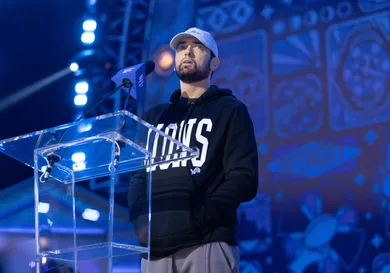 Earlier this week Eminem made a massive announcement. It came just after he appeared as a special guest at last night's NFL draft. The draft was taking place in Detroit this year and Em joined a group of legendary Lions players on stage. He used the opportunity to simultaneously reveal the highly-anticipated follow-up to his 2020 album Music To Be Murdered By. But as it turns out the announcement wasn't as much of a surprise to one Em fan as it was to everyone else.
