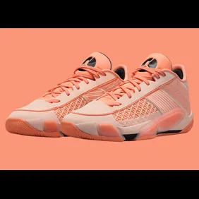 The Air Jordan 38 Low is making waves with its upcoming release in the vibrant "Crimson Tint" colorway. This iteration showcases a striking light orange hue throughout, adding a bold and energetic touch to the classic silhouette. With its sleek design and iconic Jordan branding, the Air Jordan 38 Low continues to capture the attention of sneaker enthusiasts worldwide. Set against a backdrop of clean lines and subtle detailing, the "Crimson Tint" colorway exudes a sense of modern sophistication. The light orange tones infuse the shoe with a fresh and dynamic appeal.
