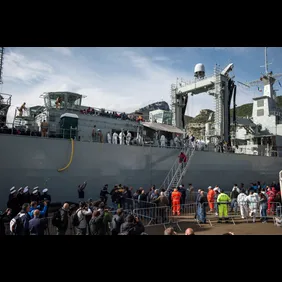 The two men arrested have been named as Al Mabrouc Wisam Harar, from Libya, and Egyptian Mohamed Ali Al Bouzid. The two are believed to have skippered one of the boats, and were identified by survivors who were among the 375 brought to Salerno by Cantabria.