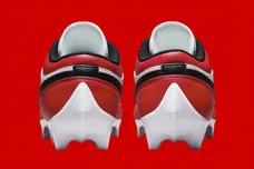 The cleats feature thick studs, found in white, for maximum traction on the field. Next, the sneakers also feature a white leather base on the uppers, with Chicago red leather overlays. Also, a black Nike Swoosh is on the side, matching the black laces and sock liner. Finally, a white Jumpman is on the tongues.