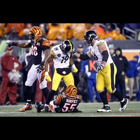According to the NFL's official ruling, Smith-Schuster was suspended for a devastating fourth-quarter block on Bengals linebacker Vontaze Burfict, who they deemed was in a defenseless posture. After Pittsburgh's 23-20 win, Antonio Brown repeatedly yelled "Karma" while Smith-Schuster spoke with reporters about the play.