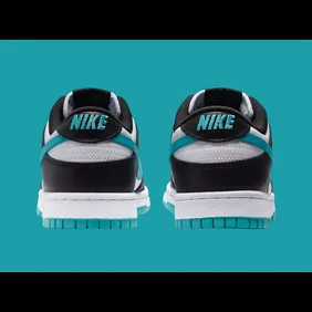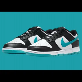 The Nike Dunk Low is set to release in an exciting "Dusty Cactus" colorway later this year. This new edition features a striking black and white color scheme, accented with unique "Dusty Cactus" blue details. The upper is primarily black and white, giving the shoe a classic and versatile look. The standout feature of this colorway is the "Dusty Cactus" blue base and Swoosh on the sides. This vibrant blue hue adds a fresh and modern touch to the traditional Dunk Low silhouette. The combination of black and white with blue accents creates a visually appealing contrast that is sure to catch the eye.