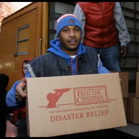 New York Knicks superstar Carmelo Anthony took a break from basketball and traveled to his hometown of Red Hook, Brooklyn to lend a hand.Through his charity, the Carmelo Anthony Foundation in conjunction with Feed The Children and Metro Ministries, the Knicks captain delivered 500 boxes filled with food and supplies just one block from where he grew up. Many of the residents there have been without power since the storm.