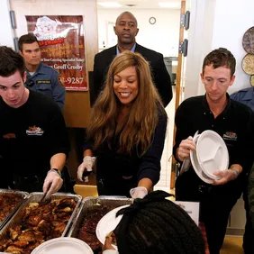 Talk show host Wendy Williams volunteered her time to help man the phones during ABC’s ‘Day of Giving’ telethon. Proceeds were donated to the American Red Cross, which went directly to the relief efforts. Williams also asked members of her studio audience to bring in canned food and supplies and she personally delivered them to her hometown of Asbury Park, NJ. While there,Williams stopped by the Springwood Center and catered 300 meals to members in the community.