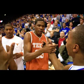 During his lone season with the Longhorns, Durant won the Naismith and Wooden awards as well as the Rupp Trophy. He averaged 25.8 points, 11.1 rebounds and 1.9 blocks per game in the 2006-07 season before declaring for the NBA draft, where he was selected No. 2 overall by the Seattle Supersonics.